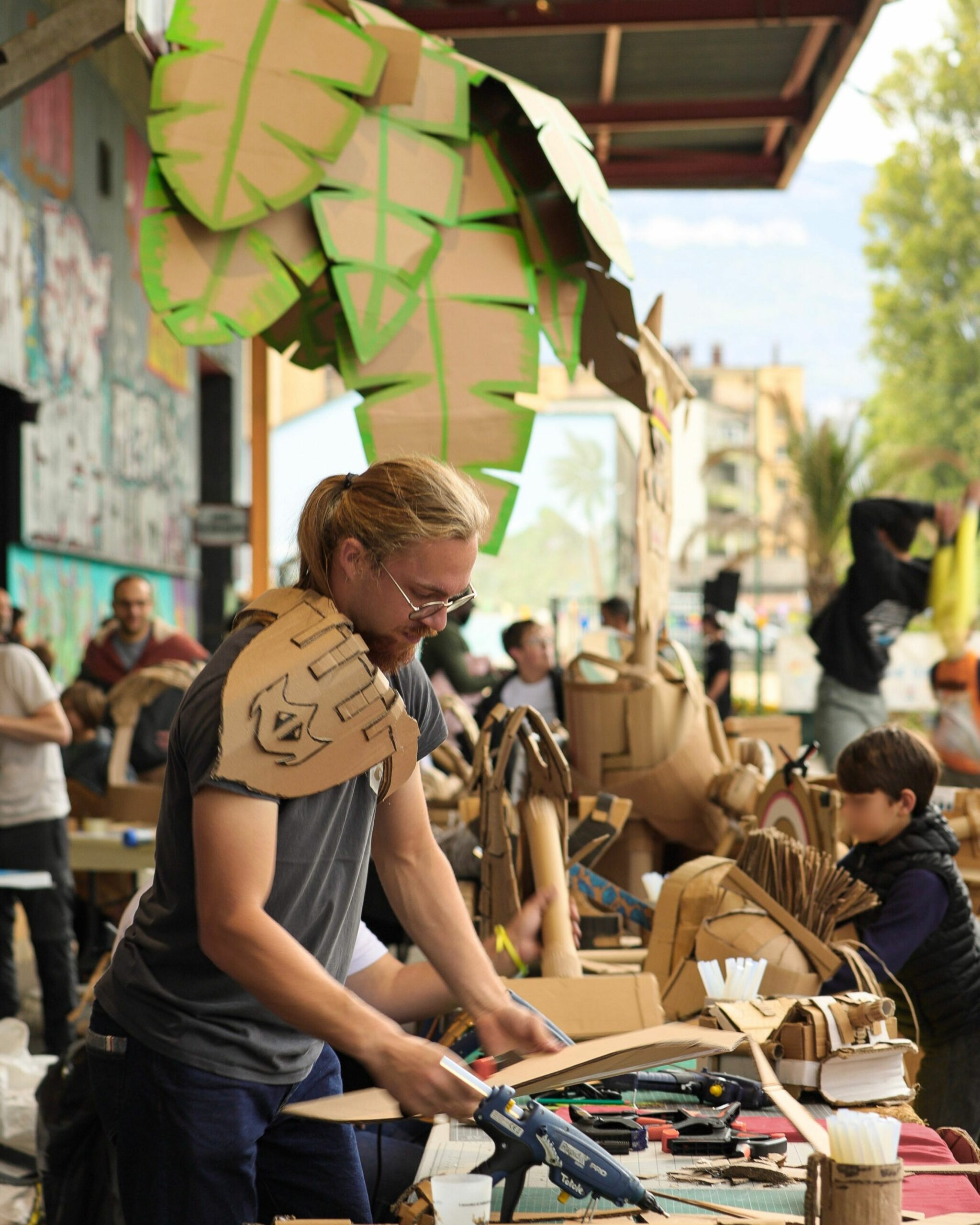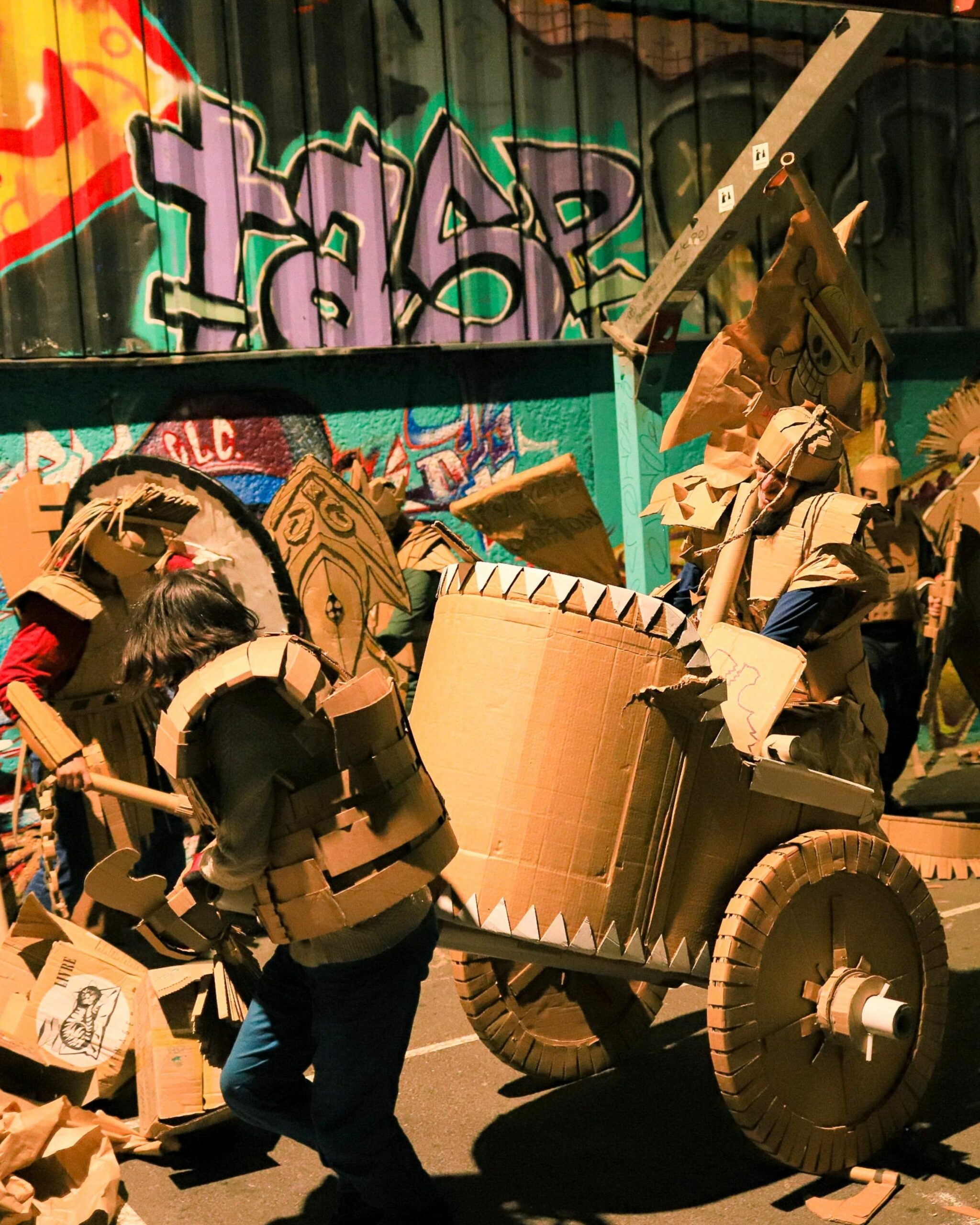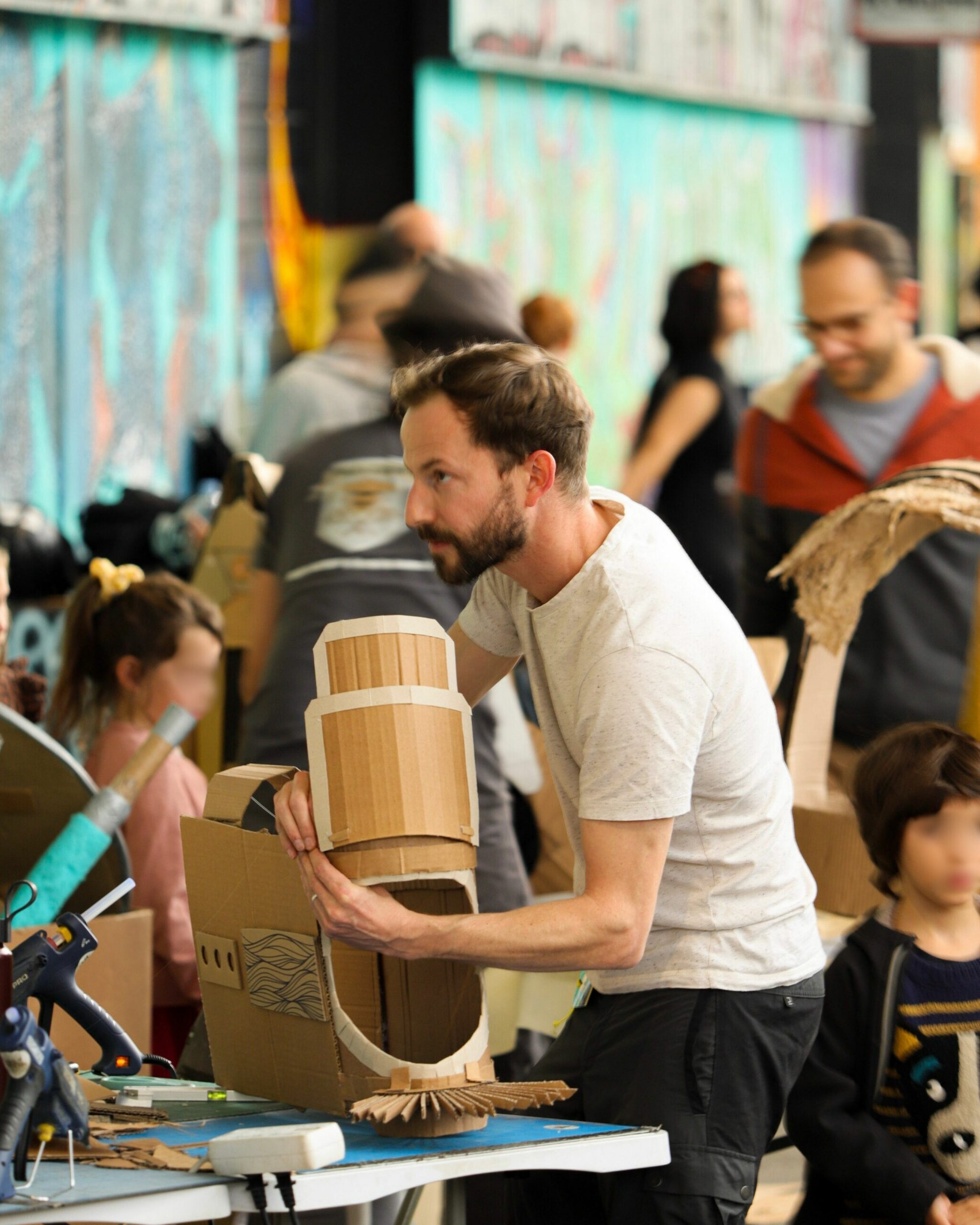 Force et Carton transforme le carton récupéré en créations ludiques et spectaculaires : armes, armures, décors, jeux et ateliers pour tous. Au festival Yggdrasil ils tiendront un stand de démonstration tout le week‑end et présenteront la KRAFTONNADE!, un combat‑spectacle final dimanche après‑midi, où leurs constructions seront mises à l’épreuve devant un public curieux, principalement familial. Entre bricolage participatif et mise en scène joyeusement destructive, ils mêlent recyclage, créativité et fête collective, de quoi rire, bricoler et applaudir des combats en carton faits maison.