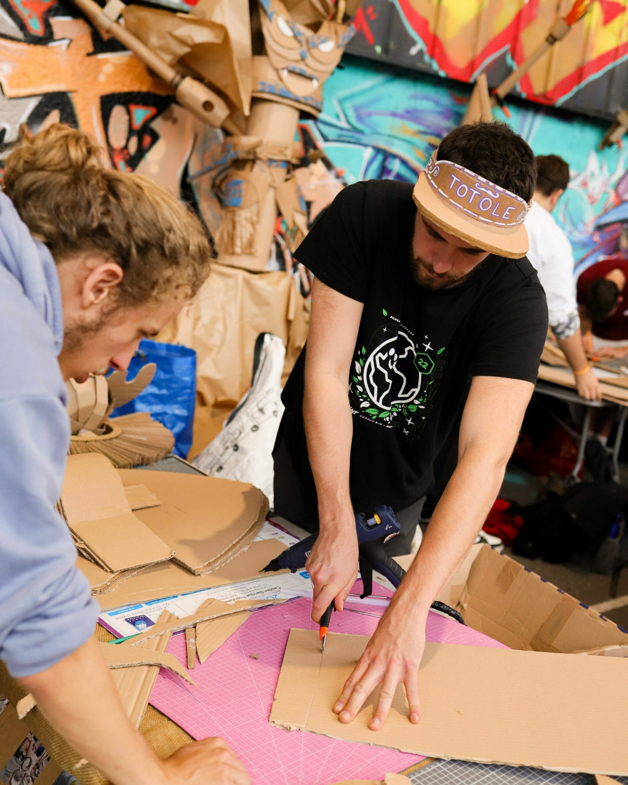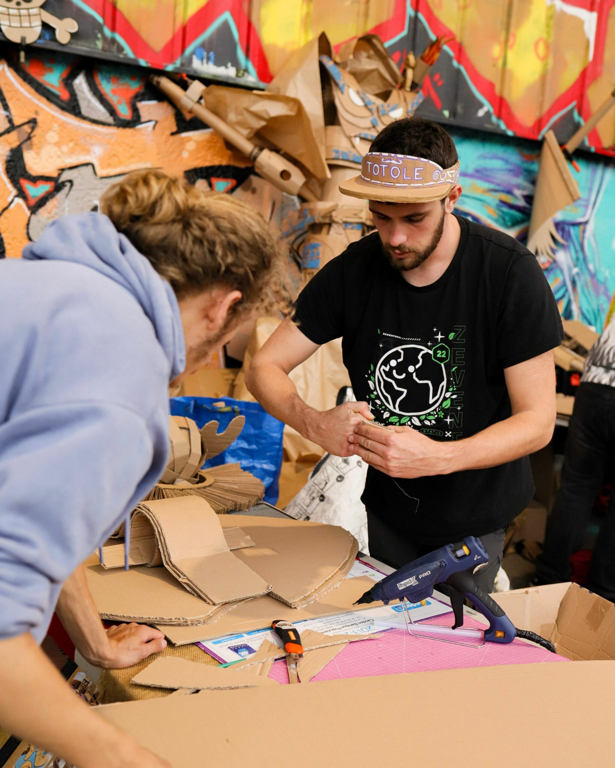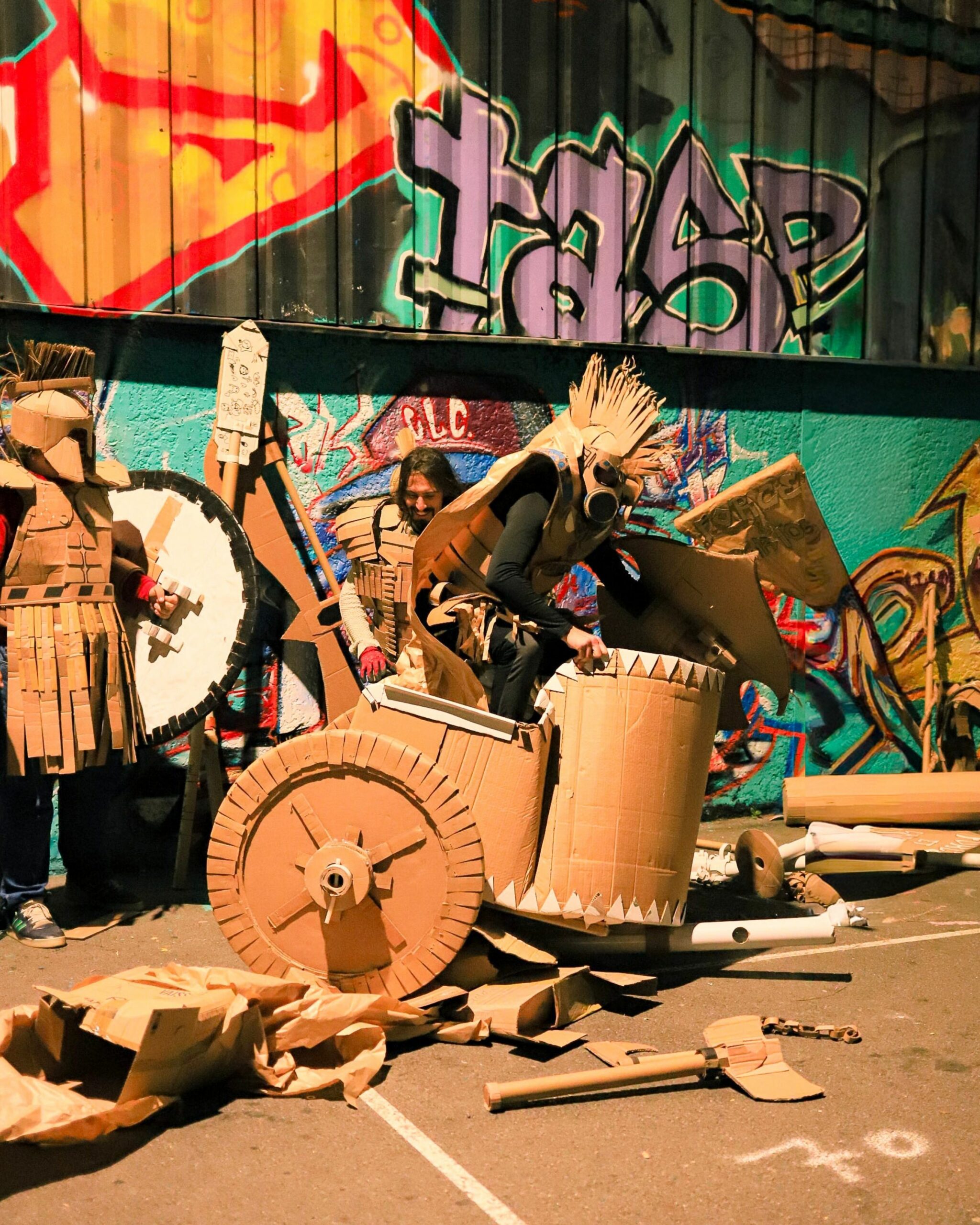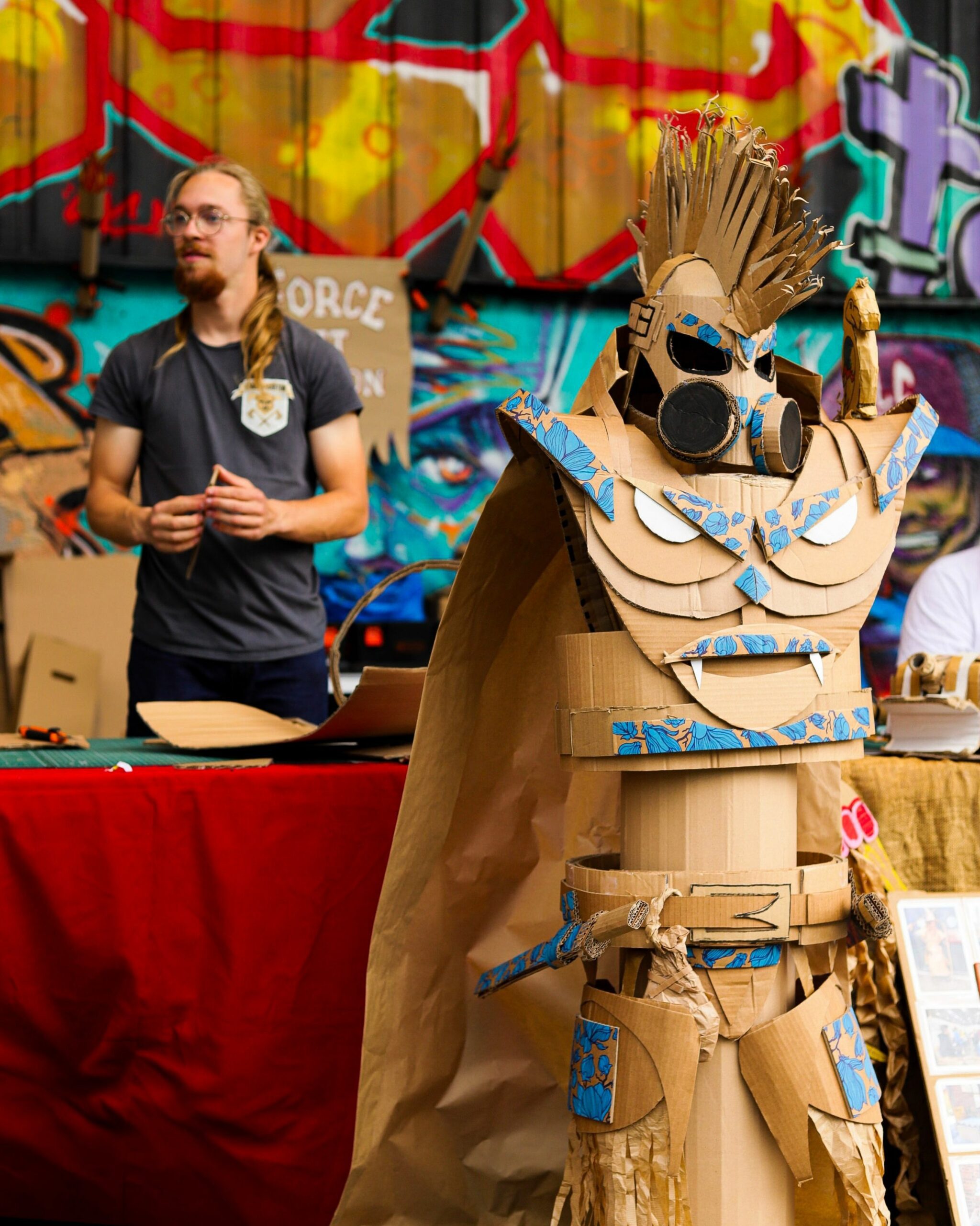 Force et Carton transforme le carton récupéré en créations ludiques et spectaculaires : armes, armures, décors, jeux et ateliers pour tous. Au festival Yggdrasil ils tiendront un stand de démonstration tout le week‑end et présenteront la KRAFTONNADE!, un combat‑spectacle final dimanche après‑midi, où leurs constructions seront mises à l’épreuve devant un public curieux, principalement familial. Entre bricolage participatif et mise en scène joyeusement destructive, ils mêlent recyclage, créativité et fête collective, de quoi rire, bricoler et applaudir des combats en carton faits maison.